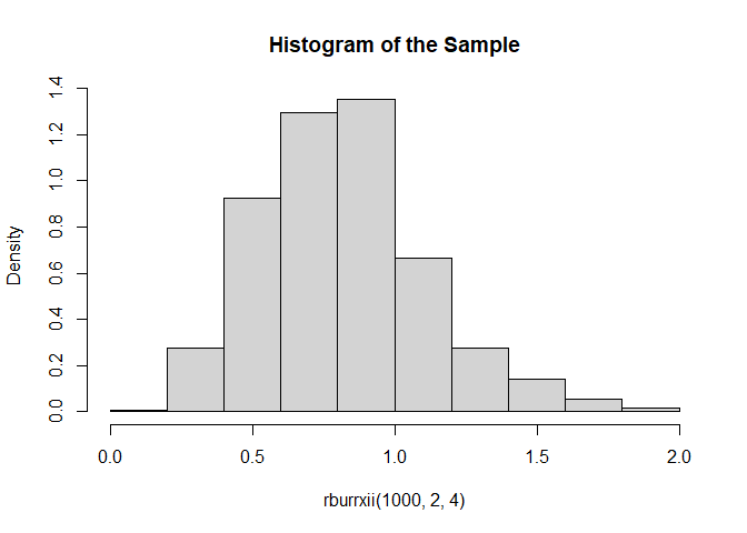 Function rburrxii generates random data following a Burr XII distribution with parameters shape1 and shape2.