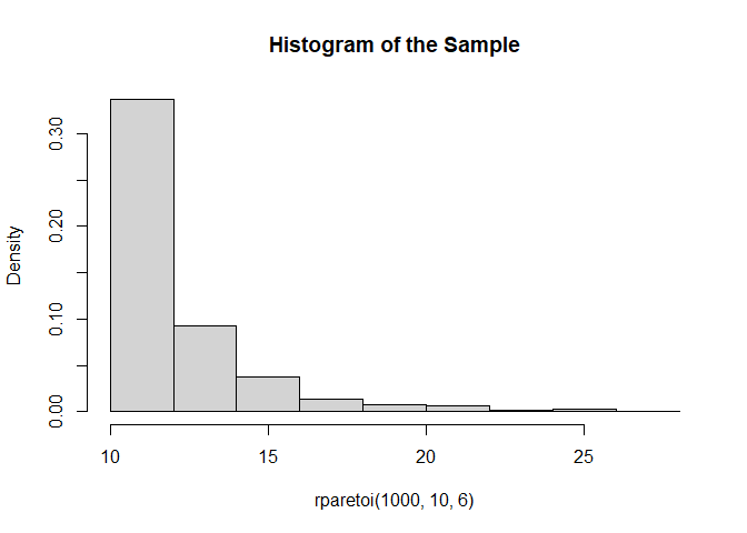 Function rparetoi generates random data following a Pareto I distribution with parameters scale and shape.